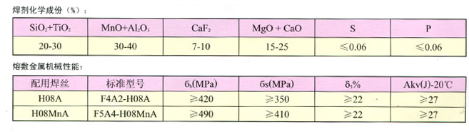 配合適當(dāng)焊絲(H08A、H08MnA)可用于焊接鍋爐,管線鋼及普通結(jié)構(gòu)鋼等。