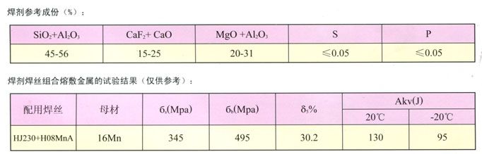 配合H08MnA,H10Mn2焊絲及某些低合金鋼焊絲,焊接低碳鋼或某些低合金鋼(如:16Mn等)結(jié)構(gòu)。